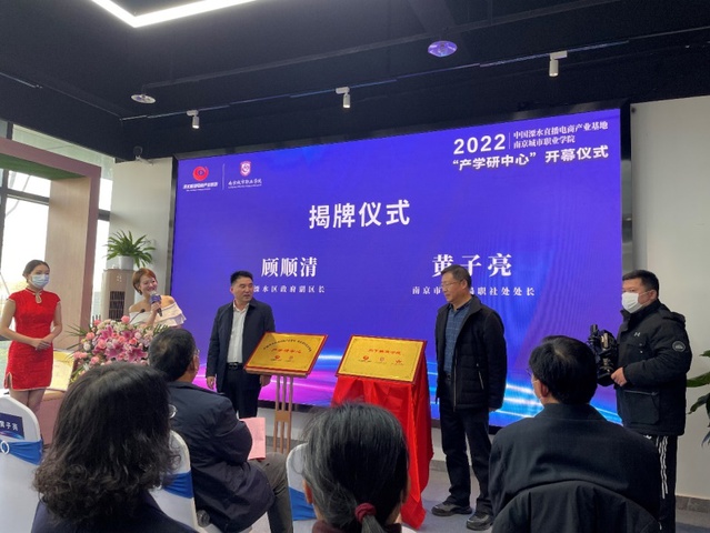 2022年1月18日,南部新城活力溧水晴空万里,风和日丽,在溧水直播电商产业基地,南京城市职业学院与直播电商产业基地共建的“产学研中心”隆重开幕。