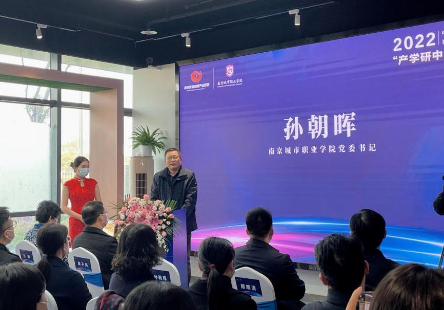 下午两点,“产学研中心”开幕仪式正式开始。首先由溧水区副区长顾顺清区长致开幕词,描绘了溧水区临空示范区的发展现状和前景,高度肯定了此次校企合作的重要意义,并对“产学研中心”将带来的区域经济促进与发展给予厚望。随后我校党委书记孙朝晖书记在致辞中回顾了学校自搬迁溧水后的办学成果,着重介绍了数字财商学院在区域经济快速发展的背景下,结合临空经济产业定位,将跨境电商、直播电商、数字经济等方面与专业课程深度融合,立项建设多个市级重点项目,对此次与溧水直播电商产业基地共建“产学研中心”的未来提出目标与希望。最后,溧水直播电商产业基地负责人常成浩致辞并展示过去一年基地获得的合作成果。
