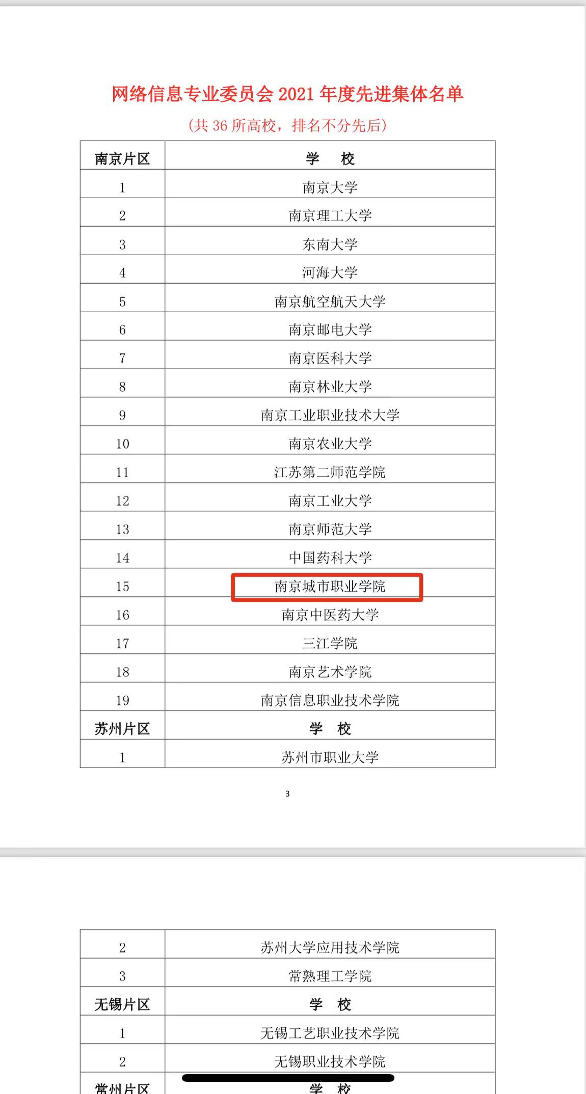 2022年1月20日,江苏省高等学校教育技术研究会网络信息专业委员会2021年度学术年会在南京召开。喜讯传来,我校再次荣获专委会颁发的江苏省高等学校信息化建设先进集体称号,表彰了我校2021年度在智慧校园建设以及推动教育信息化发展等方面作出成绩和贡献。此次南京片区共有19所高等院校获得此项荣誉,其中本科院校17所,高职院校2所。