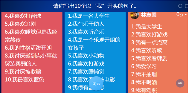 李晓菲老师在讲授“大学生的自我意识”这一章时,精心设计主题讨论话题,引导学生在学习通上用10个以“我”开头的句子为自己“画像”。学生的学习热情很快被调动起来,几分钟之内就表达出一连串鲜活的语句。老师进而指导他们对这些零散的自我描述进行分类,总结提炼出自我的三个层次,即“生理自我”、“心理自我”、“社会自我”,引发了学生的热烈讨论。
