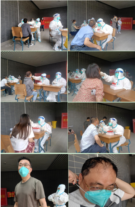5月9日,根据属地疫情防控最新要求,我校迅速招募组建了由35名教职工志愿者组成的“常态化核酸采样专班”,以应对常态化疫情防控下核酸检测采样工作。经过人员筛选、岗前培训、技能考核等一系列准备工作,5月18日,核酸采样专班正式上岗。首批核酸采样人员由王超、丁亮、杨丽娜、方芳、孙国卿和李文芳6名教职工志愿者组成,分成三组,两两配合,协力完成了当天1339人次的核酸采样工作。
