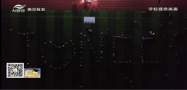 此次南京电视台播出视频中,学影成员多次运用了航拍。在拍摄荧光夜跑同学们奔跑时,李卿玮运用了定点悬停、直飞、倒退后飞和拉升下降等手法。在展现这个“I♡NCC”时,李卿玮运用了拉升下降的航拍手法,给观众一种上帝的视角,具有以小见大的画面效果,让拼字画面更具有吸引力。