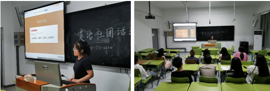 本次活动共分为三个部分举行,首先是社团指导教师潘敏老师讲解四级长篇阅读解题方法,提出了许多值得同学们注意的问题,如长篇阅读的总体时间及其在读题与文章上的分配,圈画关键词句、通过选项了解长篇阅读的整体大意。同学们表示方法已得,将在做题实践中加以应用。
