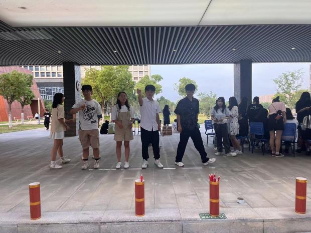 此次活动分为端午节传统节日物品DIY和传统游戏两部分。同学们在DIY制作艾草花束和五彩绳活动中开心不已,纷纷表示要将自己亲手制作的艾草花束挂置在宿舍门口、床头,把祈福纳吉的五彩绳送予亲爱的室友们和家人,以寄寓身体健康、好运随身的端午愿望。扔骰子、投壶、抢凳子,这些传统的端午小游戏,也让同学们在参与的过程中体验到不同的传统习俗和快乐。而且凡是在游戏环节中胜出的同学都可以获得粽子一枚,有的同学迫不及待得当场开始品尝起来。清风送来一阵阵粽香,传递着端午佳节的历久弥新的魅力。