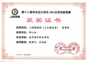 2022年5月14日,由全国CAD应用培训网络--南京中心、江苏省工程图学学会主办,东南大学承办的第十二届华东区大学生CAD应用技能竞赛成功举办。本次竞赛有来自江苏、山东、安徽、浙江、江西70余所大专院校的共1510名选手通过“云端”参加了五个赛项的角逐。我校康养工程学院工程造价及建筑工程技术专业12位同学参加了工程图绘制(土木建筑类)及三维数字建模(土木建筑类)两个赛项的角逐。