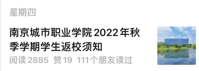 根据学校专题会议及《南京城市职业学院2022年秋季学期老生返校工作方案》的精神,学校各职能部门、二级学院通力协作,积极做好返校信息发布、学生健康申报、返校申请审核、疫情防控教育等学生返校前的各项准备工作。