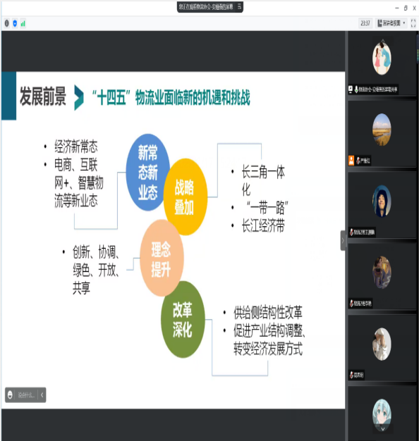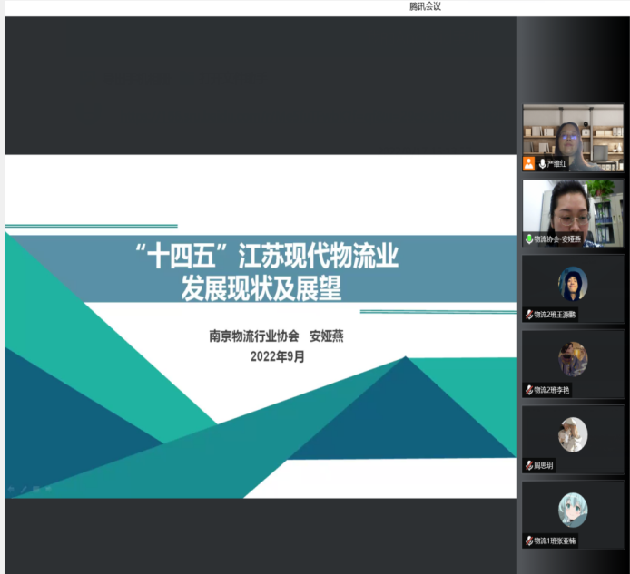 会议邀请了南京物流行业协会安娅燕主任给同学们带来了精彩的《“十四五”江苏现代物流业发展现状及展望》的专题讲座。安主任对物流行业现状、行业发展前景、从业人员要求等多个方面进行了介绍,并分析了物流市场未来发展态势,对学生们的学习目标给予了正确引导,并为大家的职业规划指明了方向。