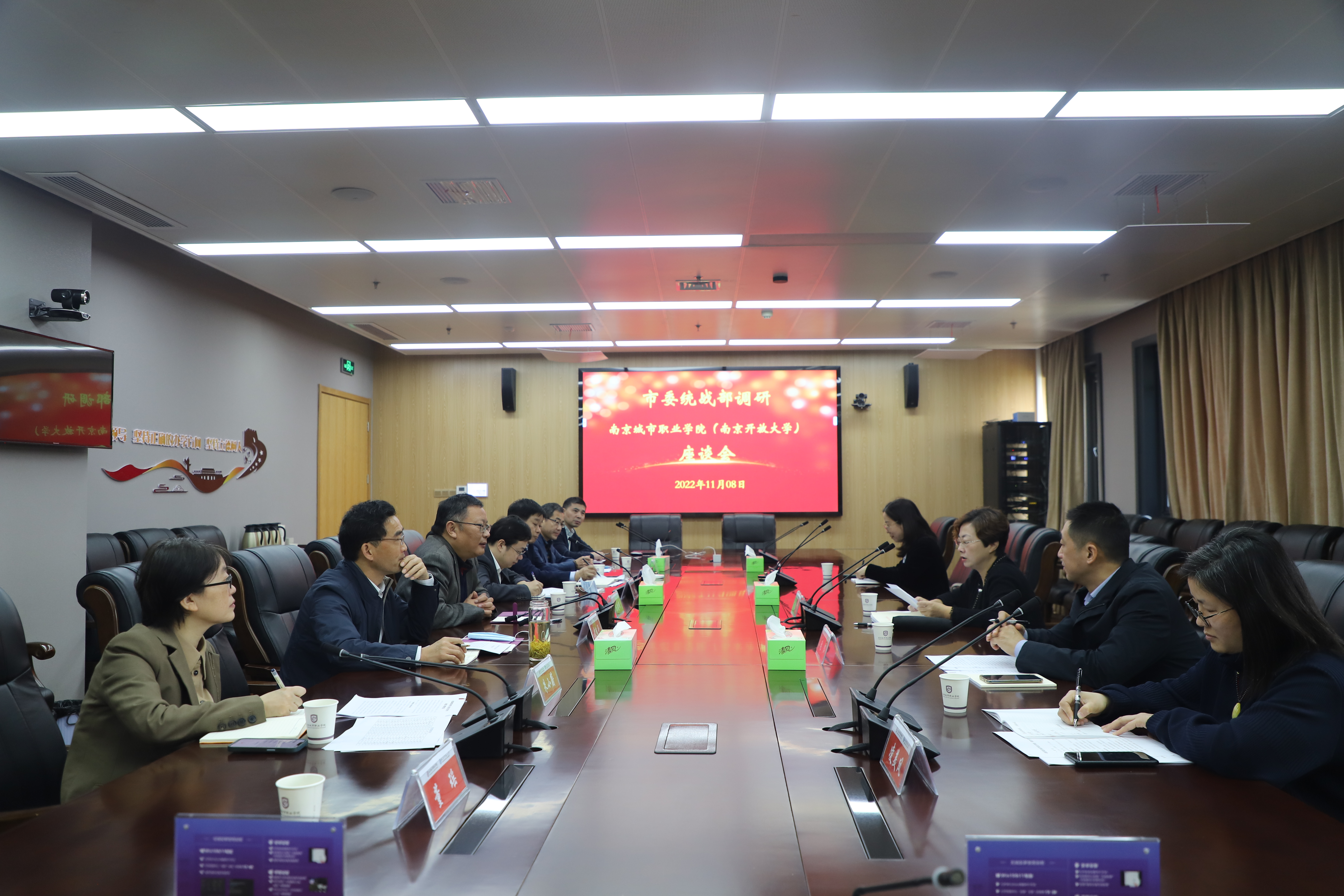 党委书记孙朝晖对调研组一行表示热烈欢迎,感谢市委统战部对南京城市职业学院统一战线工作的关心支持,并简要介绍学校基本情况。党委副书记史献平向杨部长一行汇报了我校统一战线工作开展情况。学校党委坚持以习近平新时代中国特色社会主义思想为指导,坚持正确处理一致性和多样性关系的方针,以强化党外知识分子思想政治引领为主线,以加强党外代表人士队伍建设为重点,进一步推进了统战工作的系统化、规范化、制度化,着力为推动学校改革创新发展展现新作为,作出新贡献。史献平还重点介绍了我校党外知识分子的整体情况,就筹备成立党外知识分子联谊会重难点问题进行了汇报。