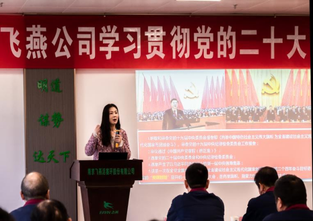 11月23日下午,王娜娜教授来到秦淮区中华门街道宣讲党的二十大精神,街道领导班子、全体机关干部、各社区书记主任共40余人参加。王娜娜教授以“为全面建设社会主义现代化国家而团结奋斗”为主题,紧扣党的二十大报告原文,结合学习思考、联系中华门街道实际,从“党的二十大的主题、主要成果”“新变革:过去五年的工作和新时代十年的伟大变革”“新境界:实现了马克思主义中国化时代化新的飞跃”“新使命:以中国式现代化全面推进中华民族伟大复兴”“新征程:向第二个百年奋斗目标进军”“新课题:深入研究党的二十大的重大理论和实践问题”六个方面,对党的二十大精神作了全面宣讲和深入阐释。
