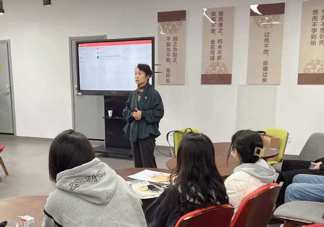 2022年11月16日下午,由数字文创学院主办,以“字愈”为主题立足于新时代中国非物质文化遗产活态化研究与实践的讲座,在南京城市职业学院图书馆书吧如期举办。此次讲座由数字文创学院副院长肖一倩发起和主持,主讲人为南京理工大学教学督导、江苏省科普美术家协会理事、全国数字艺术设计大赛江苏省分赛区组委会委员及评审专家王潇娴老师。此次讲座以我院开设的李江民非遗技艺传承技能大师工作室和传艺工坊社团为载体,结合金陵刻经技艺,与中国汉字相结合,在弘扬中国传统文化的同时,更大力倡导工匠精神与劳动光荣的价值观。此次讲座线上线下同时进行,师生参与人数共计百人。