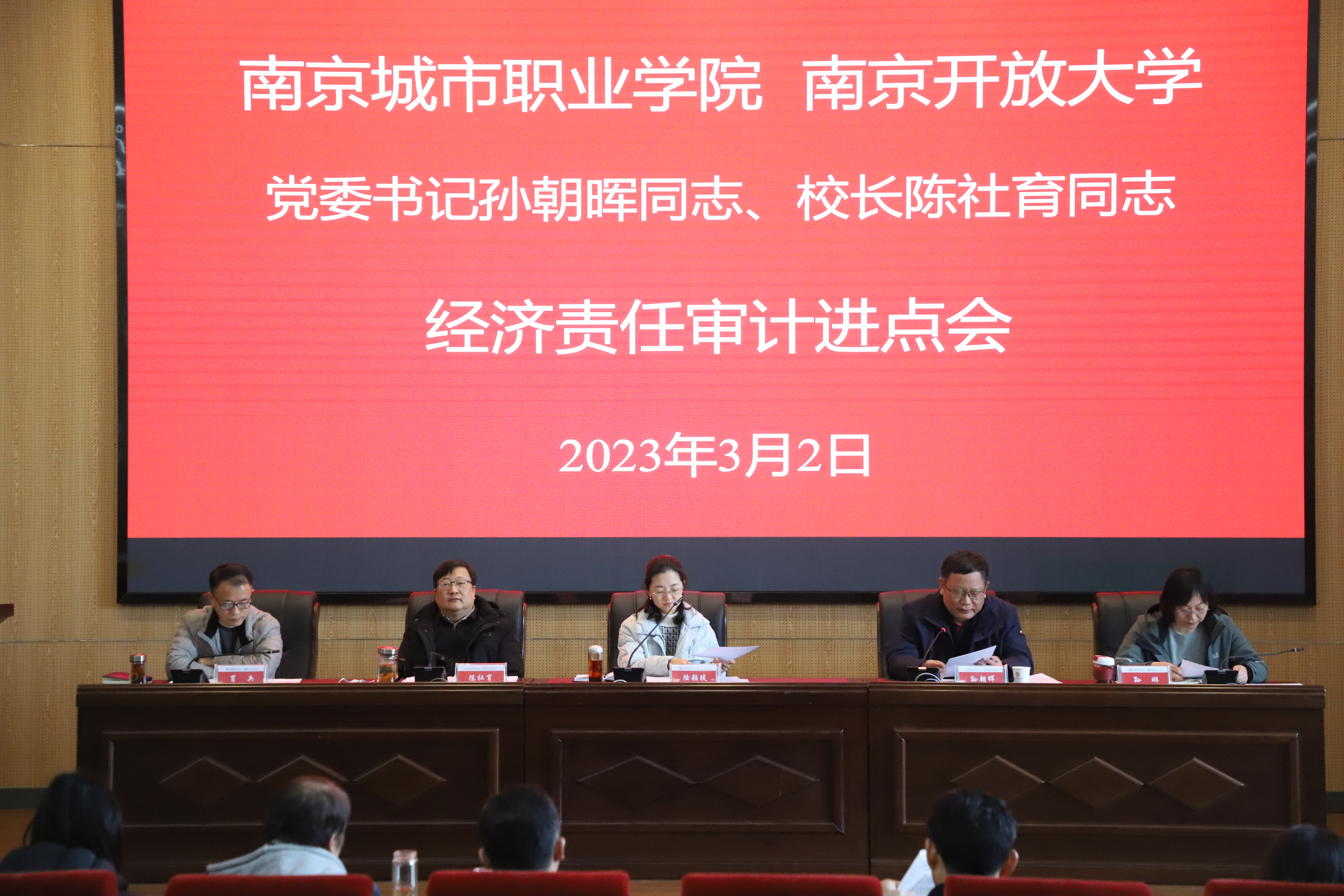 3月2日下午,我校在溧水校区办公楼一楼报告厅召开校党委书记孙朝晖、校长陈社育同志任期经济责任审计进点会。南京市审计局党组成员、总审计师陆颖琰,科教文审计处处长孙琳、副处长冒兵及审计组全体成员出席会议。我校全体校领导、中层干部参加会议。市审计局科教文审计处处长孙琳处长主持会议。