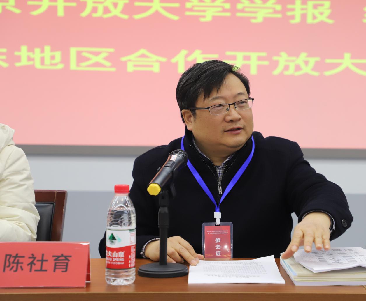 3月24日上午,会议正式开始。本次会议由南京开放大学副校长江景主持。会上,南京开放大学党委副书记、校长、学报主编陈社育首先致辞并讲话。陈社育校长以“协作共享 寻求突破,在改革创新中建设高水平开放大学”为题,从南京开放大学改革发展情况、对当前开放大学建设关键问题的认识以及对协作交流会加强合作共谋发展的想法等三个方面作了主旨发言。