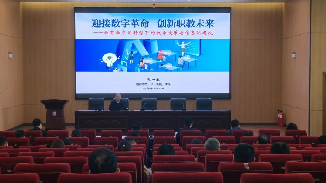 开班式结束后,校主题教育读书班举行专题辅导会第一讲,邀请南京师范大学张一春教授作专题讲座。张一春教授以“迎接数字革命 创新职教未来”为题,系统阐释了“教育数字化转型下高职院校如何开展教学改革与信息化建设”这一重大课题。高校聚焦教育数字化转型,归根结底源自于习近平新时代中国特色社会主义思想和习近平关于网络强国、数字中国等重要思想的科学指引,同时也体现出党中央对新时代教育教学改革、数字赋能提出的新要求、新挑战。