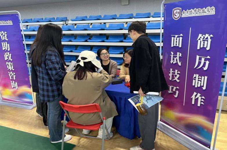为给毕业生提供权威的政策指导,本次招聘会划专区设置了政策咨询与就业指导服务台,邀请了溧水区人社局、溧水区税务局、溧水团区委及我校相关职能部门现场予以政策宣传,为同学们答疑解惑,鼓励学生留宁留溧就业,帮助我校学生好就业,就好业。