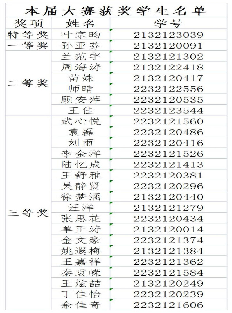 赛后,经组委会评判,我校有1名同学获省特等奖,1名同学获省一等奖,6名同学获省二等奖,18名同学获省三等奖。获得省特等奖的叶宗昀同学和省一等奖的孙亚芬同学也将代表江苏省、代表我校参加全国决赛,预祝他们取得优异成绩,也恭喜所有的获奖选手。