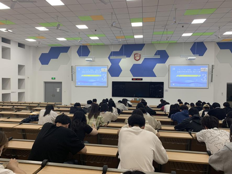 5月13日周六晚8点,经前期校赛选拔,我校67名学生集中于教4-101教室,代表我校参加第四届“外教社﹒词达人杯”江苏省大学生英语词汇大赛。各位选手积极准备,赛出了应有水平。