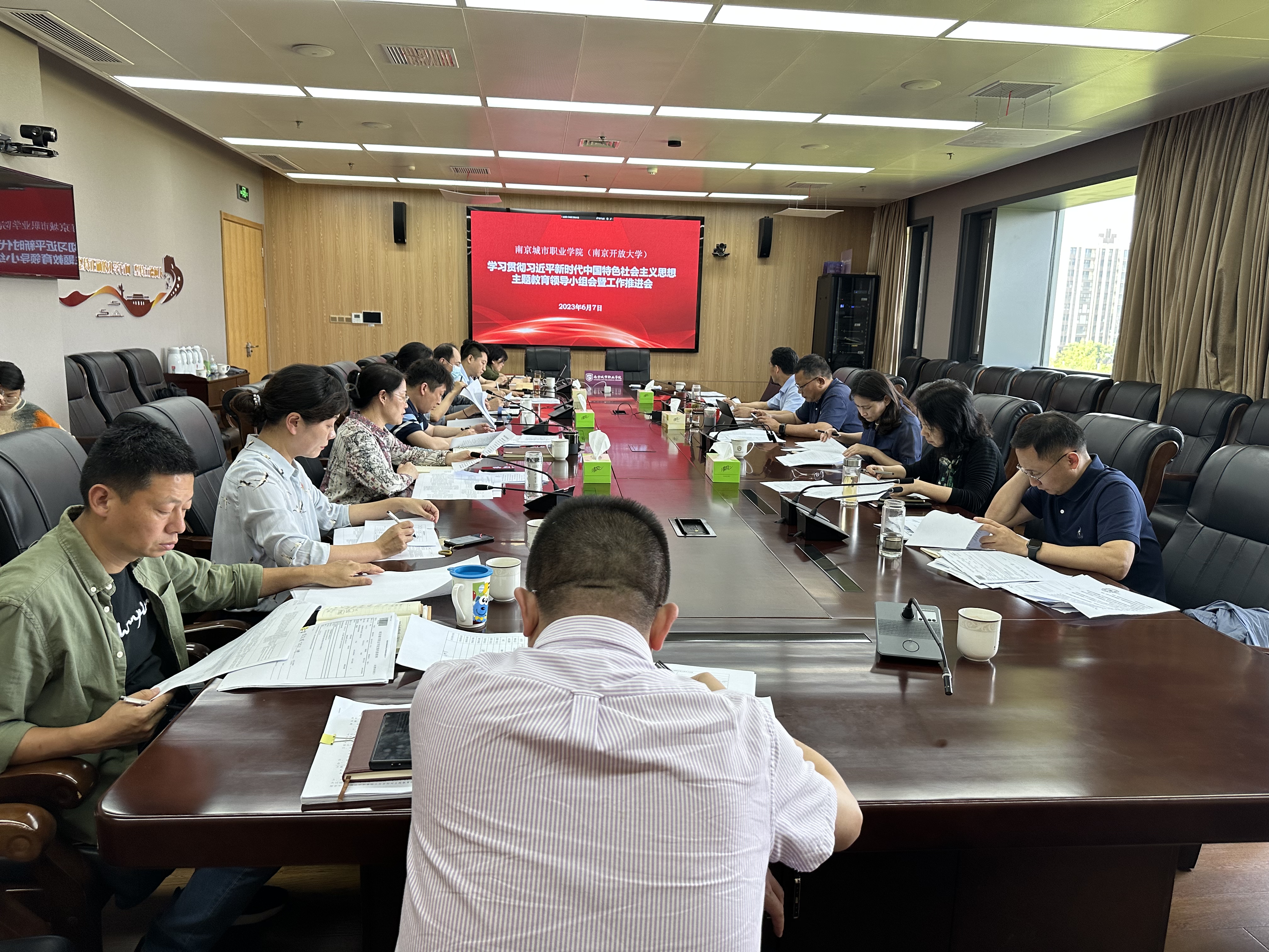 6月7日下午,我校组织召开学习贯彻习近平新时代中国特色社会主义思想主题教育领导小组会暨工作推进会,全体领导小组成员、各党总支负责人参会,主题教育办公室主任、组织人事部部长葛静主持会议。