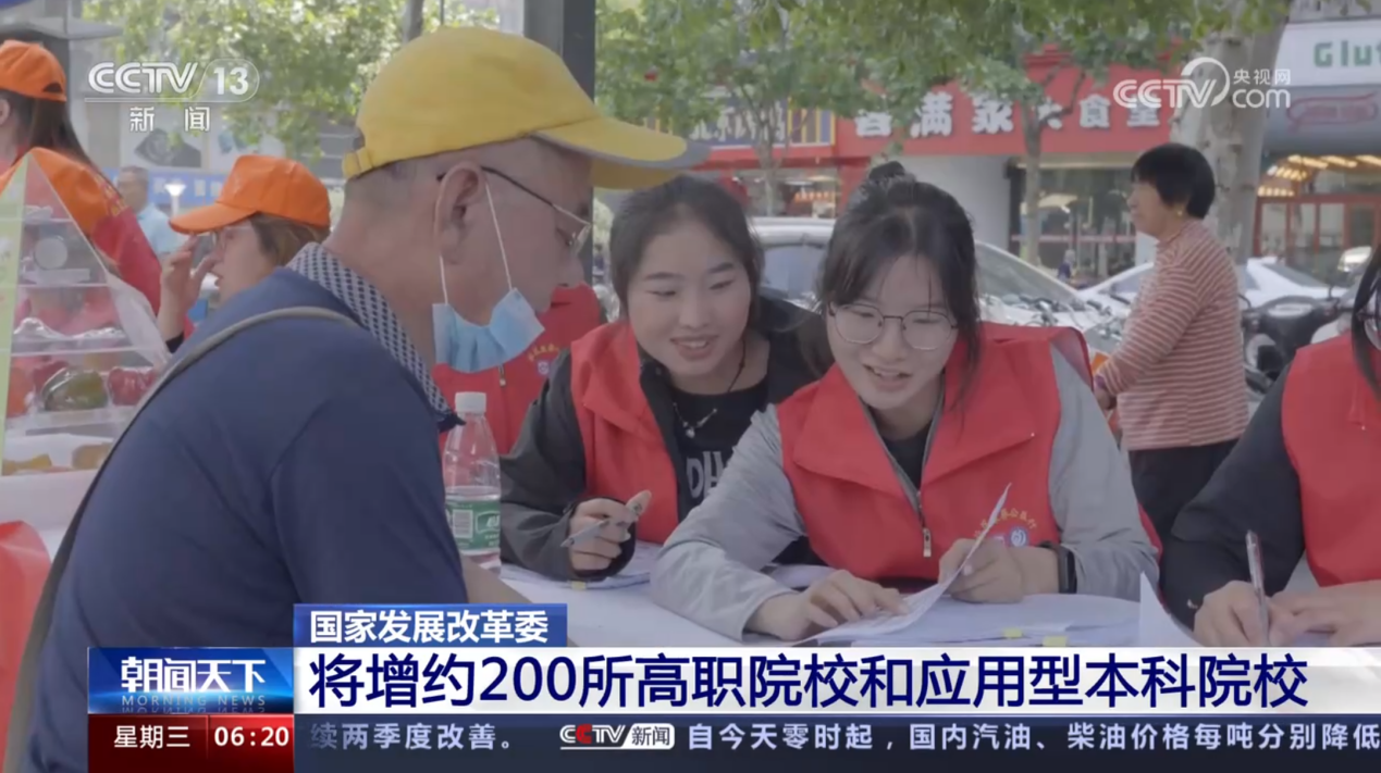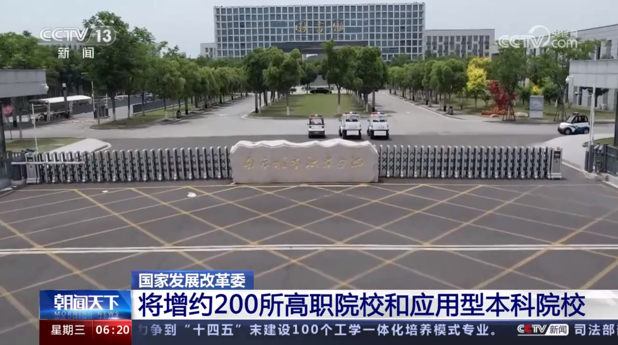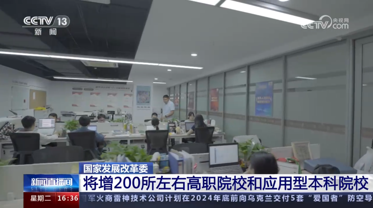 6月13日、6月14日,央视《新闻直播间》《朝闻天下》栏目分别报道了国家发改委召开专题新闻发布会,介绍推进实施职业教育产教融合赋能提升行动有关情况。新闻画面中,集中展示了我校近年来推进产教融合,提升专业体系、提升实训水平、提升融合深度的实践探索。