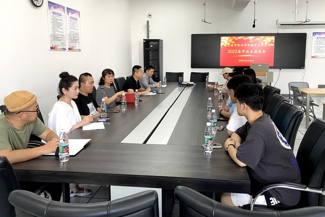 6月26日下午,数字文创学院在溧水校区敬业楼401室召开2023届毕业生代表座谈会。学院副院长肖一倩,党总支副书记、副院长陈乃鸿,毕业生辅导员、班主任代表,教研室主任以及学校学生处、后勤与安保处的有关同志出席座谈会,10位2023届毕业生代表参加座谈。