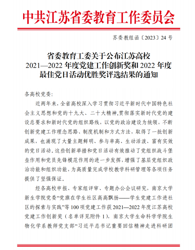 近日,省委教育工委公布江苏高校2021-2022年度党建工作创新奖和2022年度“最佳党日活动”优胜奖评选结果。经学校推荐,直属第二党总支第三党支部“传统体育盛会谱‘民族团结曲’,主题党日活动奏‘公心为共乐’”获评江苏高校2022年度“最佳党日活动”优胜奖,这是党支部继2021年度获评后再次摘得此项荣誉。