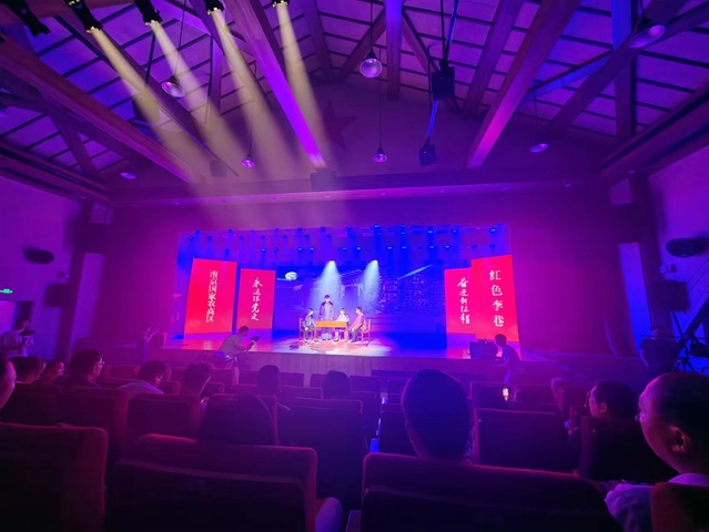 6月30日晚,由南京国家农高区、溧水区委宣传部等单位主办的2023南京国家农高区蓝莓文化旅游节暨迎“七一”红色李巷“铁军颂”夏季村晚,在白马镇石头寨村红色李巷大礼堂精彩开演,共同庆祝中国共产党建党102周年,我校红色名片《红色李巷1944》舞台剧应邀参加演出。我校党委委员、纪委书记周康书记及溧水区、新华日报社相关领导到场观演。当晚超过300位观众观看了我校精彩舞台剧,观众主要来自红色李巷景区所在的溧水区及各所属街道。