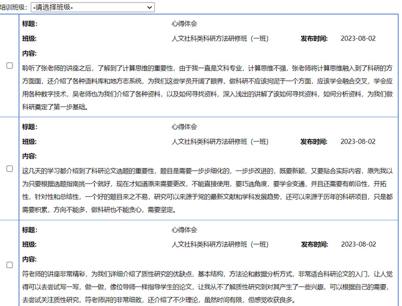 作为一名新教师,邵老师十分珍惜此次培训机会,全程认真听取讲座,课上记录笔记,课后复盘学习,并撰写心得体会。她表示:教师不仅是教师,也是研究者,需不断学习科学理论来指导教学,发现教学,并结合自身实际,撰写科研论文,虽然科研不易,但与教学相结合则服务于学校高质量发展。此次培训让她初步了解了质性研究的基本结构和论文选题的重要性,在今后的工作中,她将不断积累,将所学化为所用,努力在科研上起好步、得成长。