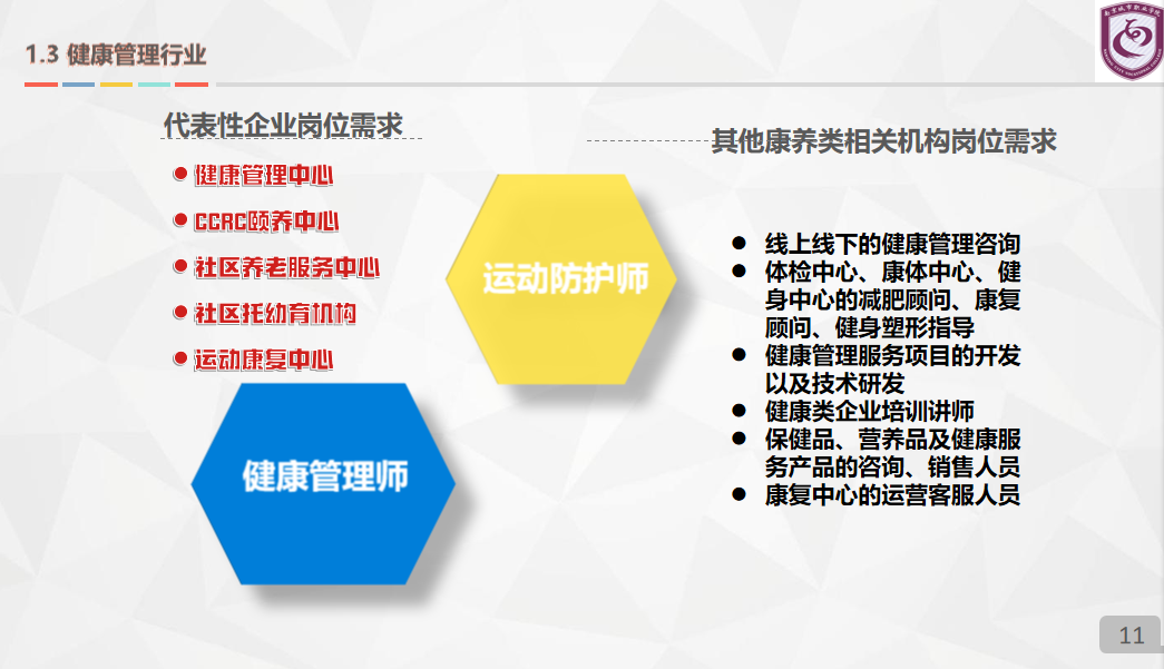 本次健康管理专业剖析在行业专家和学院领导的指导下,进一步明确了该专业支持服务社区“一老一小”重点人群的路径,清楚了健康管理师、运动防护师两个典型工作岗位的基本工作流程,为健康管理与运动防护两个方向核心课程的融合优化提供了建设性的建议。下一步,本专业将围绕合作企业的典型工作岗位技能与任务流程,进一步提高课程内容重构的精准度,优化整合两个方向核心课程,提升“技术+管理”复合型健康管理人才培养的质量和岗位适应力。