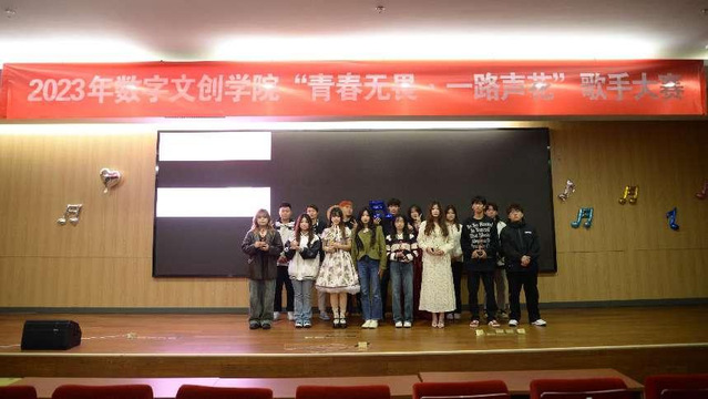 2023年11月7日,数字文创学院于图书馆一楼报告厅举办的 “青春无畏·一路声花”歌手大赛圆满落幕。大赛唱出活力青春,舞动梦想希望,释放激情无限,全场近300人观看比赛。