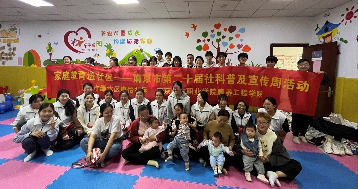 家庭是孩子的第一所学校,家长是孩子的第一任老师,家庭教育对婴幼儿的健康成长具有重要作用。为积极响应南京市第二十届社科普及宣传周活动号召,2023年10月30日,南京城市职业学院康养工程学院婴幼儿托育服务与管理专业师生共30余名前往南京市溧水区康怡社区,开展家庭教育进社区活动,宣传普及家庭育儿知识。