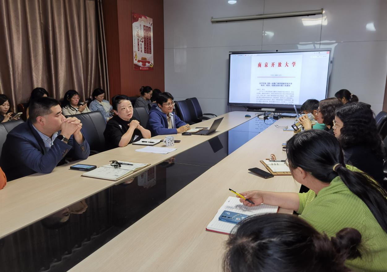 学习会上,蔡平领学了《进一步推广使用国家开放大学标识、校训、校歌实施方案》(宁开大〔2023〕15 号),讲解了国家开放大学的校标、校训的内涵,播放了校歌。蔡院长回顾了从1978年邓小平同志批示成立广播电视大学以来,南京开放大学一路走过的历程。蔡院长指出迎评工作对于促进学校规范教学管理、改善办学条件、提高教学质量和社会影响力等方面发挥着重要作用,全院教职工要高度重视,把开放迎评作为近期重中之重的工作,认真学习迎评相关文件,落实教学要求,做好访谈准备,全力以赴做好迎评各项工作。