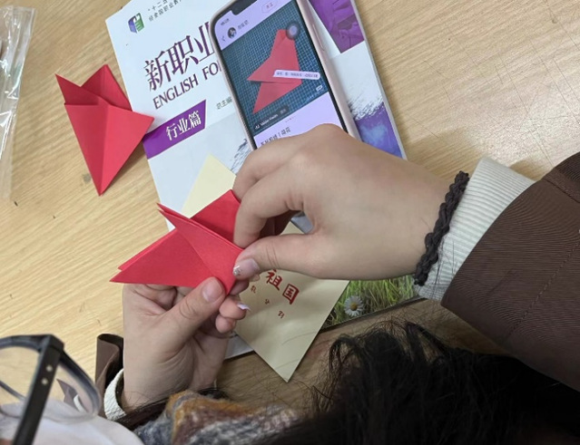 活动伊始,赵广骄指出本次团日活动主题和目的,随后分发红色明信片,让同学们以书信方式给未来的自己写一封信,写下想要表达的话语。接下来同学们通过剪纸并上色,创作有关红色文化的作品,完成后在班级内展览、交流。
