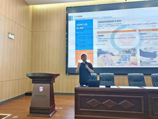 江苏润和软件股份有限公司项目经理姜国庆详细介绍润和企业文化、业务范围、公司环境、招聘需求及员工福利、晋升发展等情况,并强调此次主要面向我院25届有PS、CAD软件学习背景的设计类专业毕业生招聘数据标注工作人员。姜国庆鼓励同学们要积极参与毕业实习实践,积攒工作经验,了解职场,为未来职业生涯打下坚实基础。宣讲会结束后,有意向应聘的学生提交简历并进行现场咨询了解。