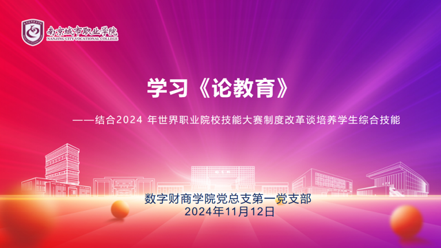 为深入推进对习近平总书记《论教育》的学习,2024年11月12日下午,数字财商学院党总支第一党支部在支部书记滕静涛老师的主持下,开展了以“学习《论教育》——结合2024 年世界职业院校技能大赛制度改革谈培养学生综合技能”主题党日活动。