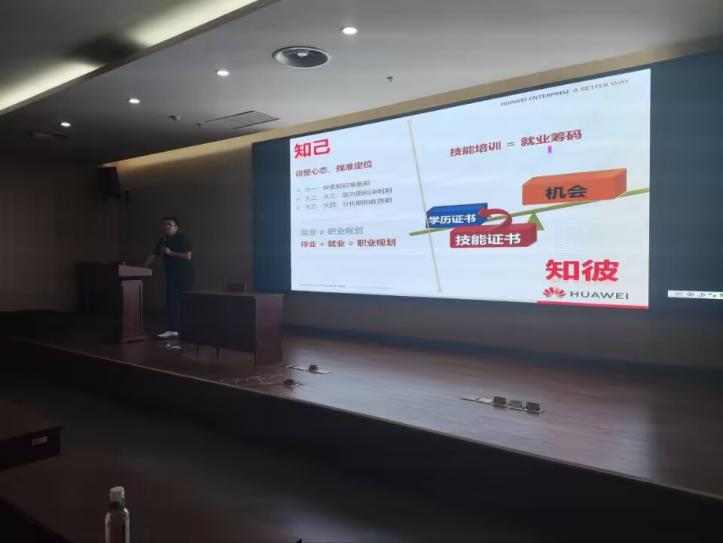 讲座中,企业技术总监结合当下网络技术行业发展趋势,从“技术深耕”与“职业进阶”双维度展开分享。他以网络优化、云计算运维、网络安全防护等核心岗位为例,详细拆解了各岗位的能力要求、工作内容及晋升通道,明确指出扎实的网络原理基础、熟练的实操技能和持续的证书考取是高职学生的核心竞争力。同时,针对三年专业学习,他建议新生大一夯实专业基础,大二聚焦专项技能实训,大三通过企业实习积累项目经验,形成学习、实践、认证三位一体的成长路径。