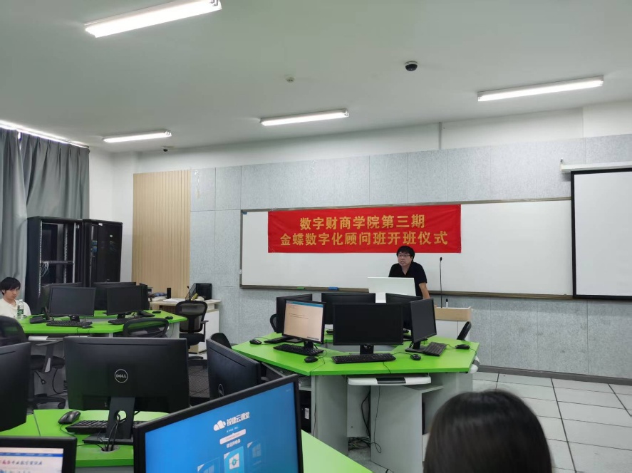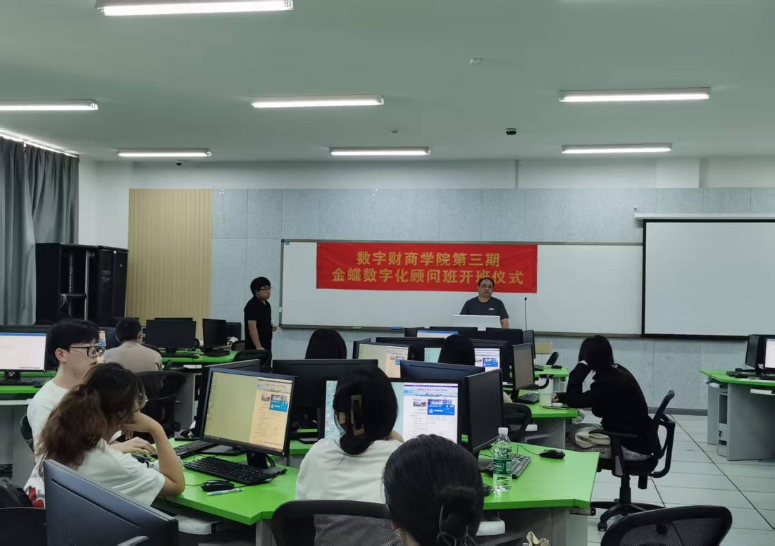 春华秋实,硕果盈枝。2025年9月22日,我校与金蝶精一科技有限公司联合举办的“第三期金蝶数字化顾问班”开班仪式在数字财商学院厚生楼511实训室如期举行。开班仪式由大数据与会计专业负责人唐青玉老师主持,参与人员有学院副院长丁亮、特邀金蝶企业专家高级讲师旷久明,以及23级大数据与会计专业、大数据与财务管理专业45名学生共同见证了这一重要时刻。这标志着我校在深化产教融合、培养高素质数字化应用型人才的道路上又迈出了坚实的一步。