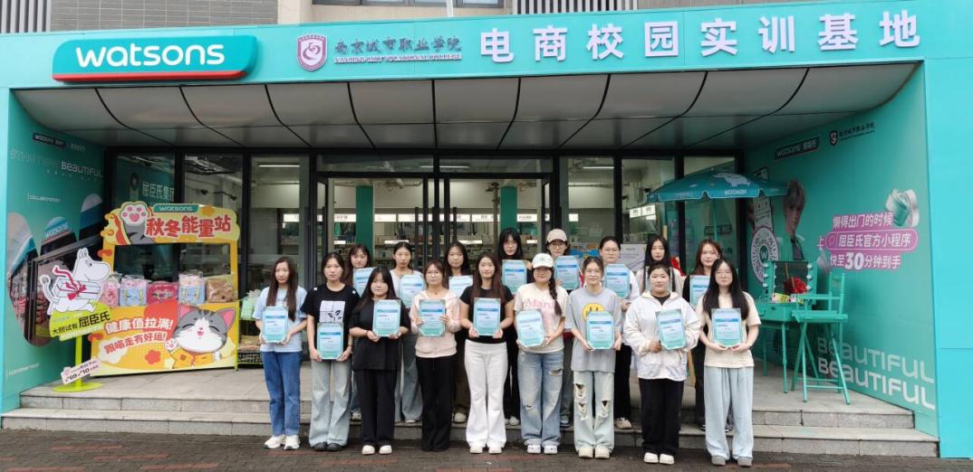 2025 年 9 月 25 日,屈臣氏电商校园实训基地首期结业暨揭牌仪式在我校溧水校区隆重举行。南京城市职业学院副校长陈正宇、数字财商学院院长滕静涛、教务处副处长蔡天泽,屈臣氏中国区销售营运委员会委员黄国庆、中国区助理人力资源总监董照云等校企双方代表出席仪式。该基地由屈臣氏集团出资建设,主要承担我校跨境电商专业群在校生的电商相关实训教学任务,校企双方协同开展区域开放型电商技能培训、课程资源开发、技术服务等产学研任务,基地由企业负责组织电商社团及勤工俭学学生开展日常电商经营。