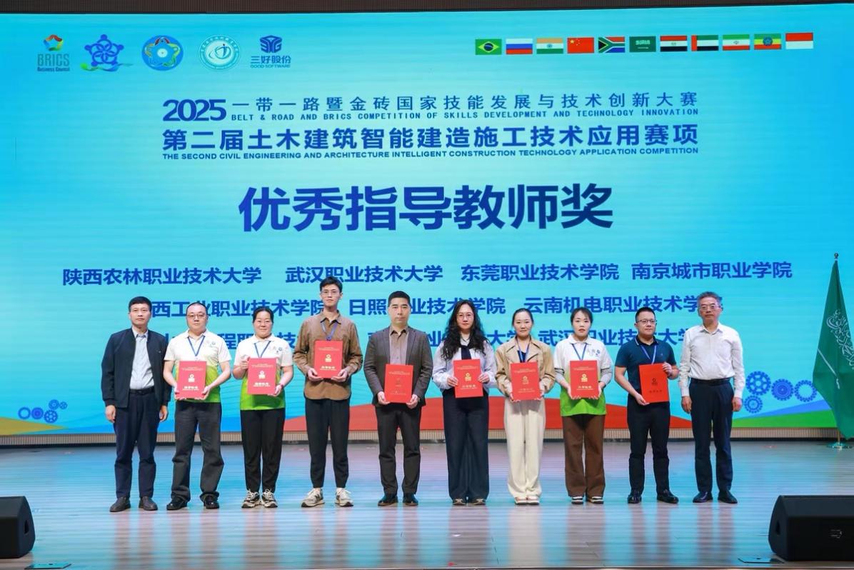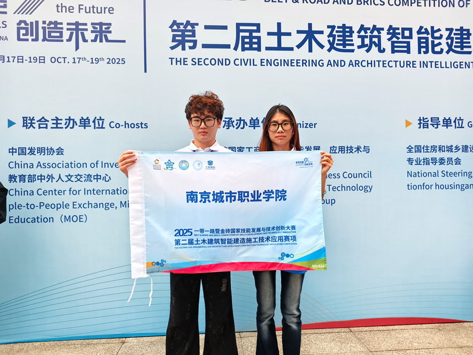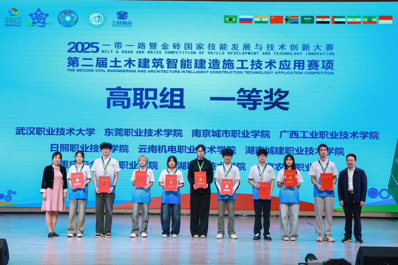 10月19日,2025“一带一路”暨金砖国家技能发展与技术创新大赛之第二届土木建筑智能建造施工技术应用赛项在重庆安全技术职业学院圆满落幕。我校代表队表现优异,康养工程学院2023级建筑工程技术专业张竞武、高兰琴同学组建的代表队以全国排名第十的领先成绩,斩获高职组一等奖。学校荣获高职组“最佳组织奖”,周康、何芳老师荣获“优秀指导教师”称号。