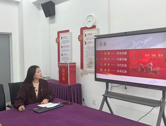 在互动交流环节,党员同志们纷纷表示,长征精神是中国共产党人精神谱系的重要组成部分,作为思政课教师,要主动担当起传承红色基因的使命,将长征精神融入课堂教学,用鲜活的历史素材讲好党的故事、革命的故事,引导学生树立正确的世界观、人生观、价值观。更要将精神伟力转化为履职尽责的强大动力与务实举措。