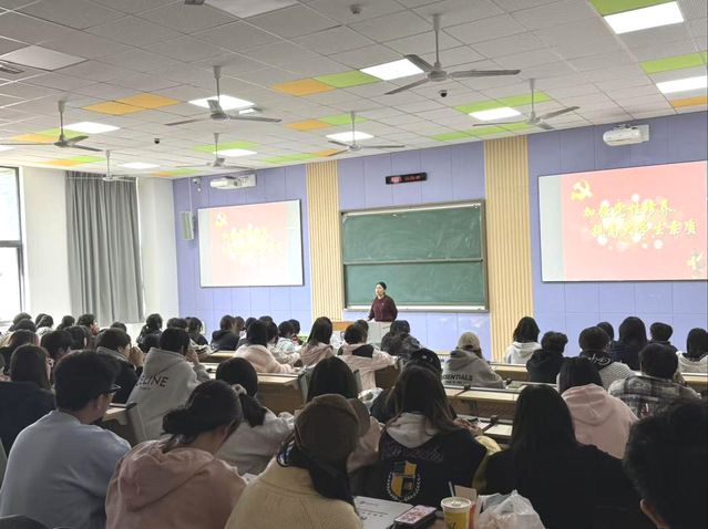 2025 年 10 月 23 日中午,数字文创学院党总支二支部党员赵龙梅老师在敬业楼110教室为全院递交入党申请书的同学讲授一场主题鲜明、内涵深刻的党课培训讲座。此次讲座为同学们深入了解中国共产党、坚定入党信念、争取早日成为一名优秀党员奠定了良好的基础。