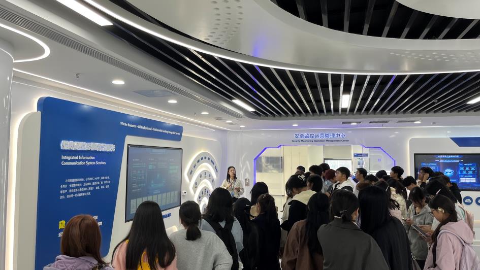 随后,新生们走进中心机房。在技术人员指引下,大家近距离观察服务器集群、数据存储设备及智能监控系统,了解机房环境管控、数据安全防护的实操流程。