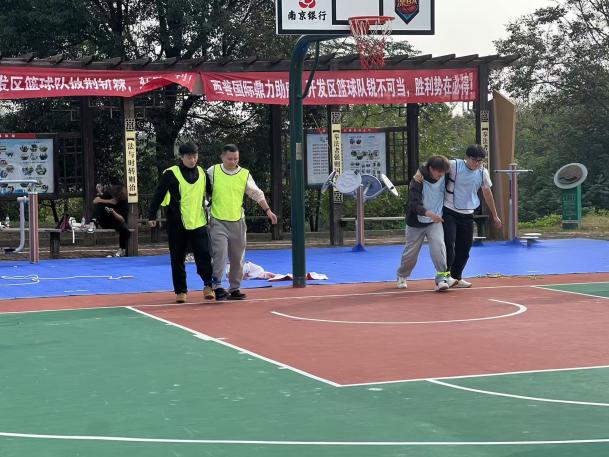 活动前两天,师生团队与社区工作人员深入对接,充分了解需求与场地条件,为35名社区员工量身定制了包含“默契托球接力”“三人四足”等4个团体项目及“精准投壶”“沙包掷准”等3个个人项目的活动方案。活动当天,朱杰老师将学生分为7个小组,每个小组独立负责一个项目的规则讲解、赛事组织与裁判工作。同学们准备充分,认真研读规则,有条不紊地引导比赛进程,确保活动顺利进行。学生们专业组织能力和认真的服务态度,赢得了社区工作人员的高度赞许。