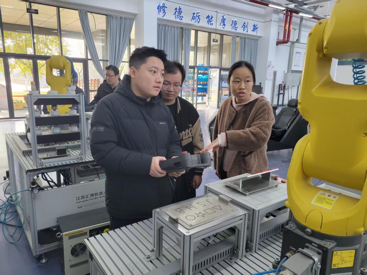 为深化产教融合、推进校企协同育人,11月21日,南京长安汽车有限公司殷军大师工作室负责人殷军带领9名技术骨干走进南京城市职业学院智能工程学院,开展为期一天的工业机器人专项技术培训。本次培训由我校智能工程学院教师张月、蔡琦婧担任主讲,培训地点为学院专业实训室——实训工厂。双方围绕工业机器人操作、编程与维护等核心内容展开深入交流与实操演练。