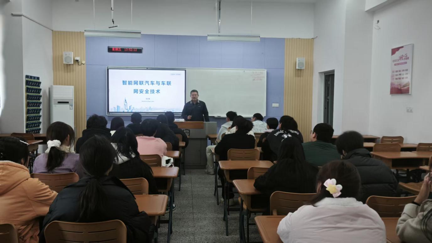 2025年11月21日下午,开沃新能源汽车集团股份有限公司中央研究院总监、沃行科技总经理刘立军应邀为智能工程学院智能网联汽车技术专业的同学们带来一场主题为《智能网联汽车与车联网安全技术》的专题讲座。