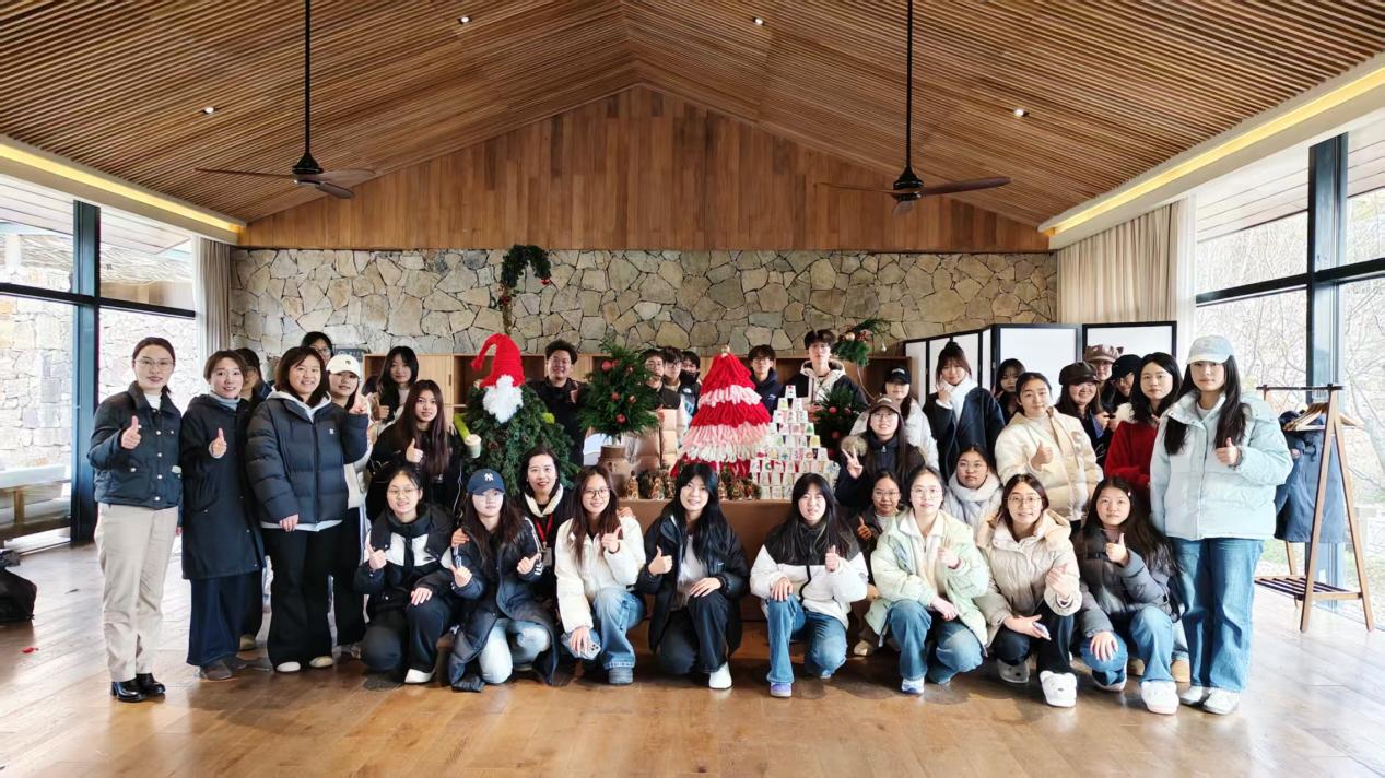 作为康养工程学院“行走的文旅课堂”校外实训系列的第五站,依托与裸心岭度假村深厚的校企合作基础,2025 年 12 月 4 日,学院 2025 级旅游管理专业学生在旅游教研室主任李海霞老师的带领下,应裸心岭度假村专项邀请并结合课程教学实际需求,赴现场开展圣诞主题活动布置专项实训。此次实训以实战化教学深化产教融合,是校企协同育人的生动实践。