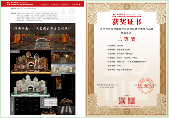近日,2025年第九届“米兰设计周—中国高校设计学科师生优秀作品展”职教赛道全国赛区评选结果重磅揭晓。在这场汇聚全国职业院校设计精英的权威竞赛中,数字文创学院的5名学生与3名教师的作品大放异彩,一举斩获职教赛道国赛一等奖1项、二等奖3项、三等奖2项,充分展现了学院师生协同创新、多维发展的专业实力。