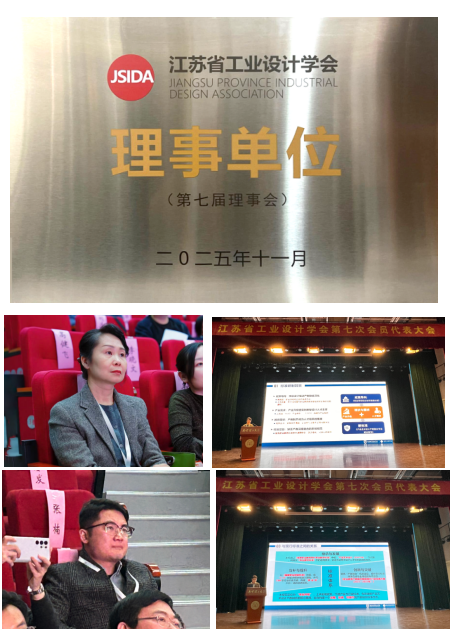 2025年11月30日,江苏省工业设计学会第七次会员代表大会在南京理工大学隆重召开。数字文创学院院长肖一倩携多位专任教师应邀参会。本次大会围绕工业设计领域的前沿趋势与创新实践展开深入探讨,以AI赋能设计、以设计驱动创新、以创新引领未来,为江苏创新发展贡献设计智慧与时代担当,谱写江苏工业设计高质量发展的新篇章。本次大会上,我校成功当选“江苏省工业设计学会第七届理事会理事单位”。这一荣誉标志着学院在工业设计领域的专业影响力与社会贡献获行业高度认可,为未来学科建设、产学研合作与人才培养搭建了更高层次的平台。与会期间,肖一倩院长和王硕老师做了《产品艺术设计专业产教融合建设规范》的主题报告。