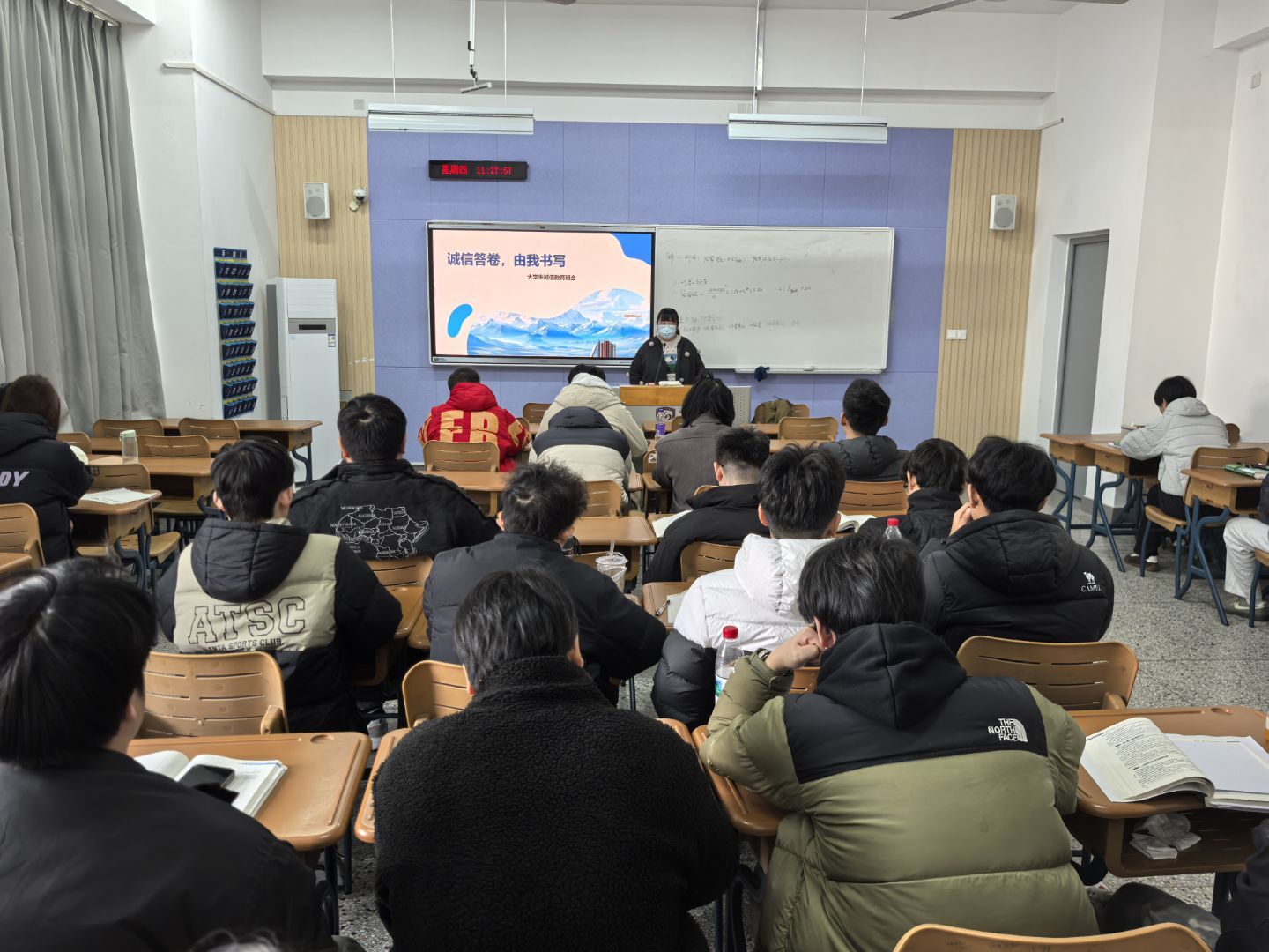 此次主题班会的召开,既为同学们厘清了考试全流程的注意事项,也筑牢了诚信应考的思想根基,为康养工程学院营造风清气正的考试氛围奠定了坚实基础,也为24级学子顺利迎战英语四级考试提供了有力保障。