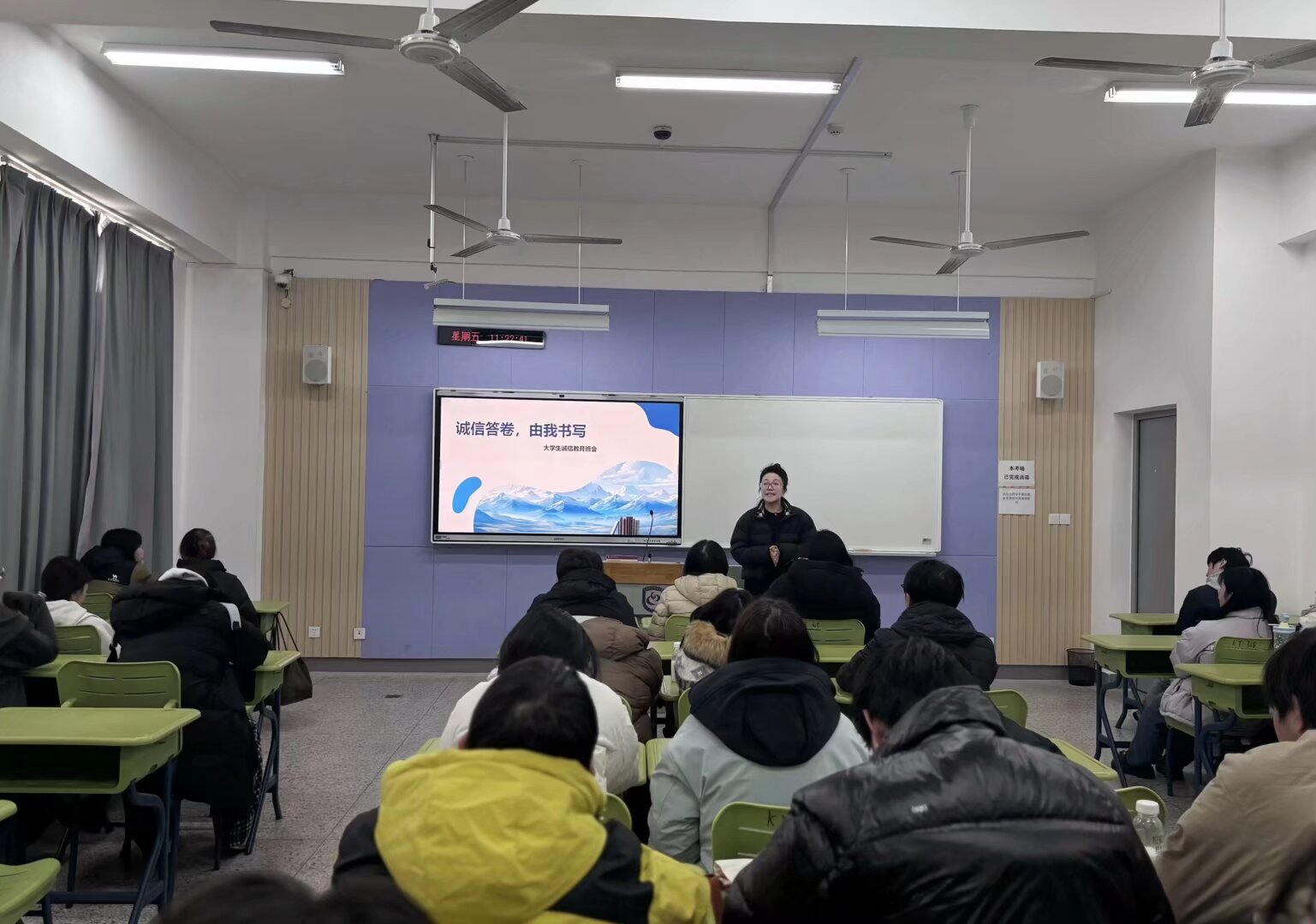 为切实加强考风考纪教育,引导学生树立诚信应考意识,确保2025年下半年全国大学英语四级考试顺利进行,近日,康养工程学院24级各班级陆续开展“诚信答卷,由我书写”主题班会,为即将踏上考场的学子们筑牢思想防线、明晰考试规范。