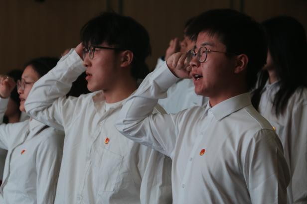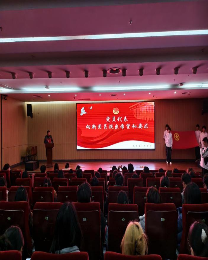 “我志愿加入中国共产主义青年团,坚决拥护中国共产党的领导……”在团员代表薛皓的带领下,新团员们高举右拳,面向鲜艳的团旗庄严宣誓。铿锵有力的誓言字字千钧,在报告厅内久久回荡,既是新团员们对共青团组织的郑重承诺,更是他们矢志不渝跟党走的坚定心声。