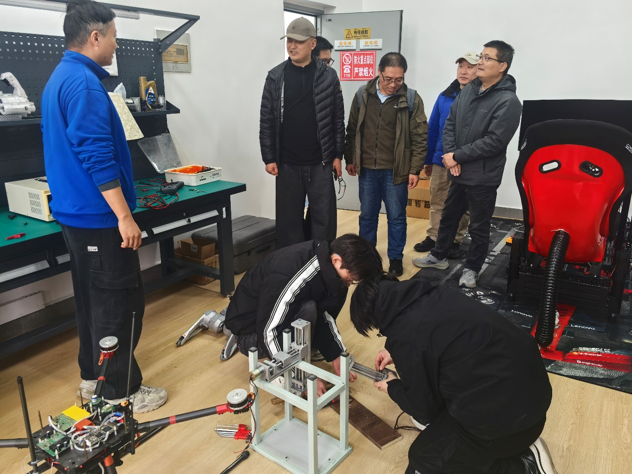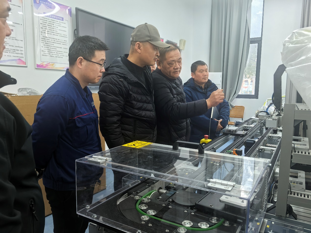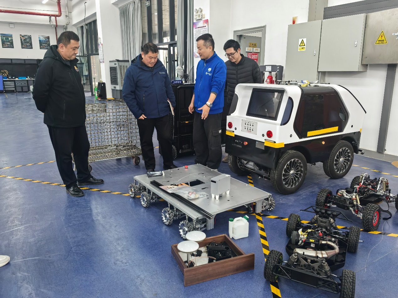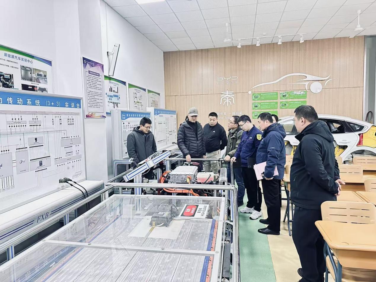 交流会后,双方共同前往学院新能源汽车实训工厂、核心技术实训室及智能制造实训室进行实地参观。同行的大师工作室工程师们对实训室内的先进设备配置和贴合产业需求的实训内容表现出浓厚兴趣,现场围绕企业拟建的AGV基地、总装车间实训室建设事宜展开深入沟通,就实训设备选型、场地规划、教学与生产融合模式等细节交换了意见。